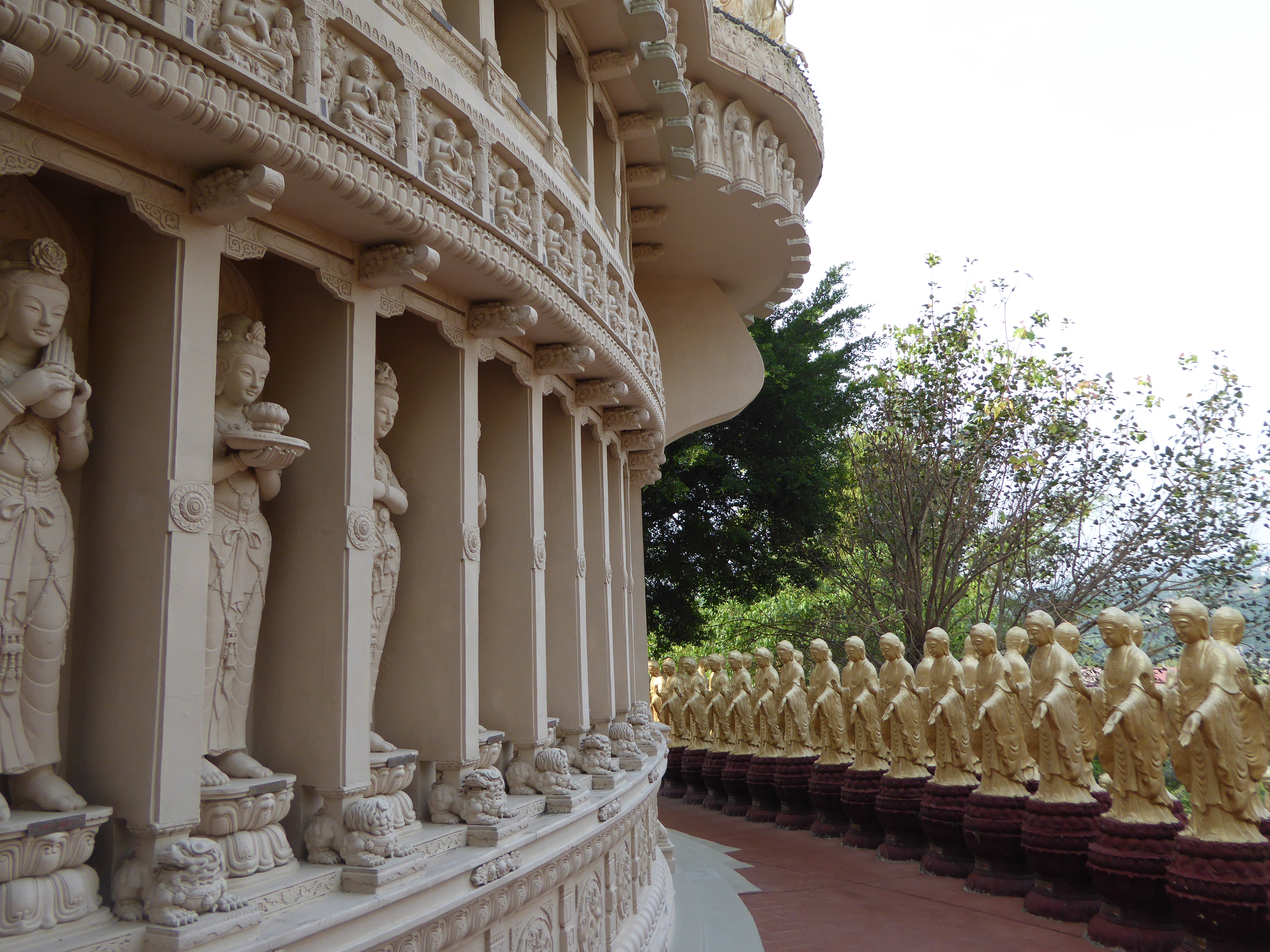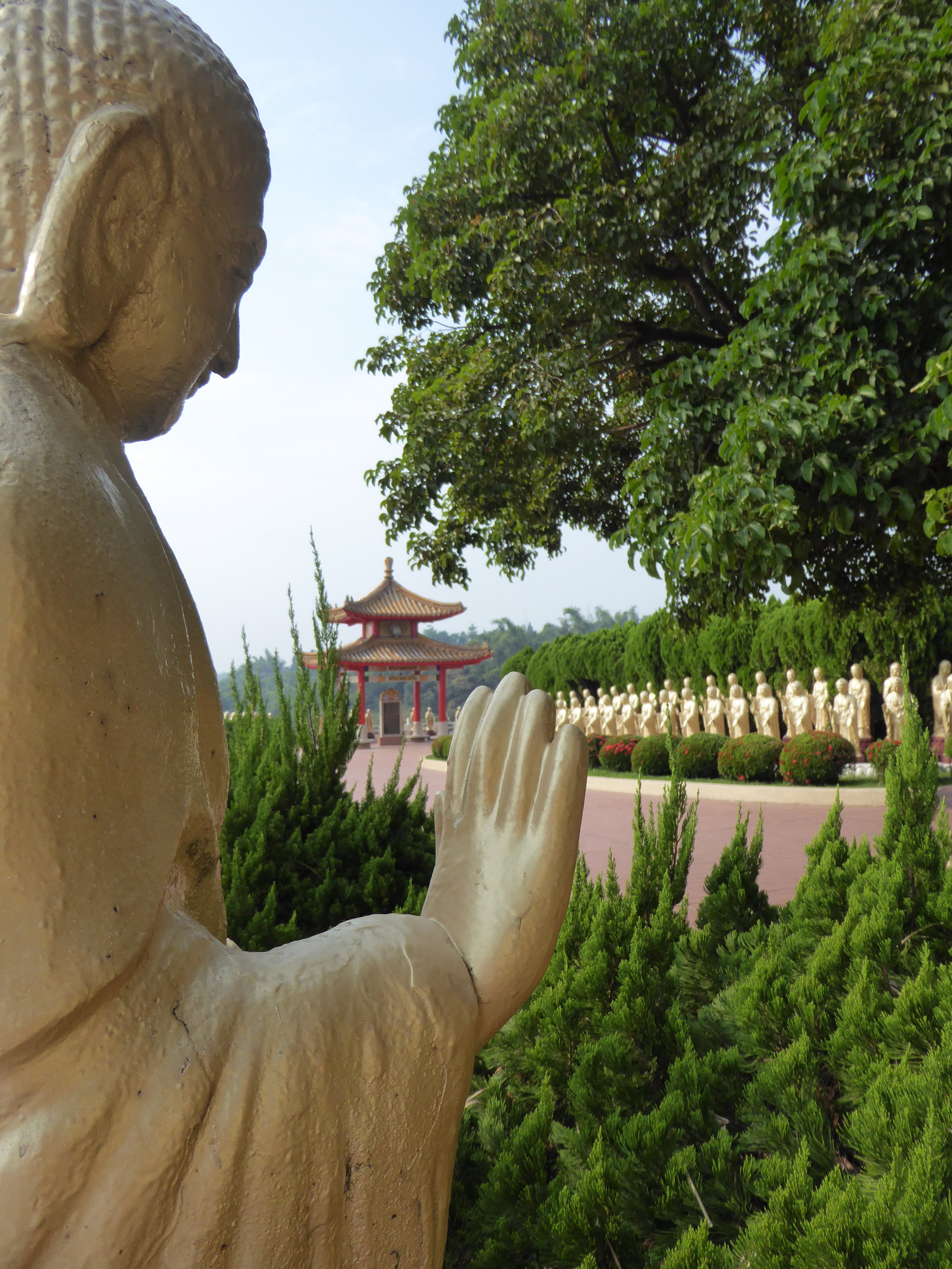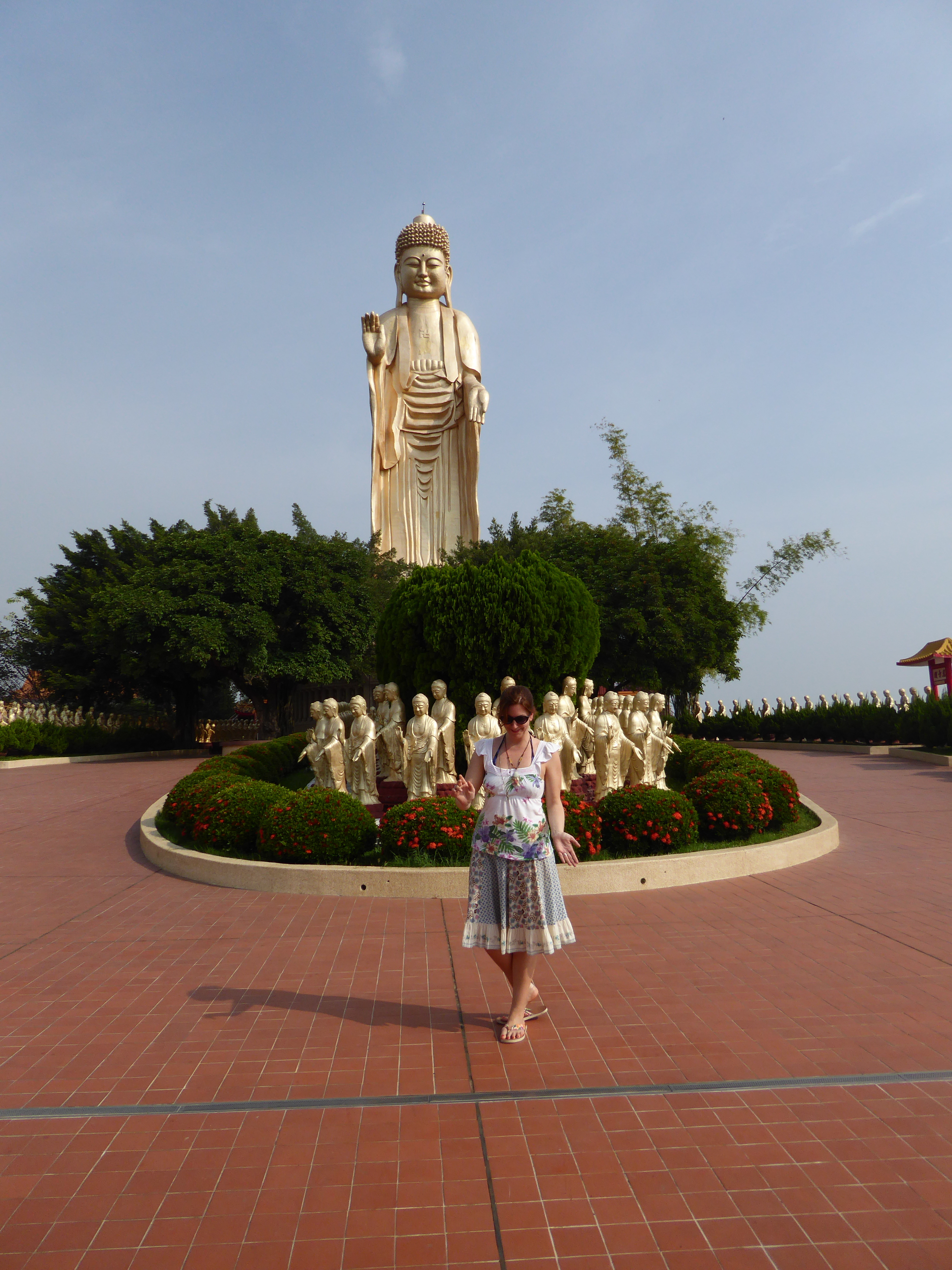 Am nächsten Morgen klingelt um 4 Uhr nachts der Wecker, die Morgenzeremonie der Mönche beginnt um 5 Uhr. Hunderte buddhistische Mönche und Nonnen mit kurz geschorenen Haaren und schlichten Gewändern versammeln sich in der Haupthalle, wo drei riesige goldene Buddhastatuen über die Betenden wachen. Die buddhistischen Mönche und Nonnen bewegen sich im Gleichtakt, einer unsichtbaren Choreografie folgend. Als alle Mönche gleichzeitig zu beten und zu singen beginnen, spürt man wieder diese Energie, von der auch die Tempel Taiwans erfüllt sind. Die Aura Taiwans wirkt hier besonders stark. Kein Wunder, dass die Taiwaner so abergläubig sind.